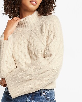 Express Women S Black And White Open Cable Knit Sweater Size Xs Ebay